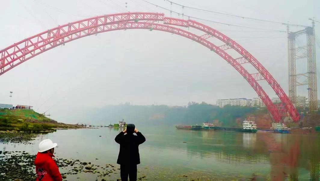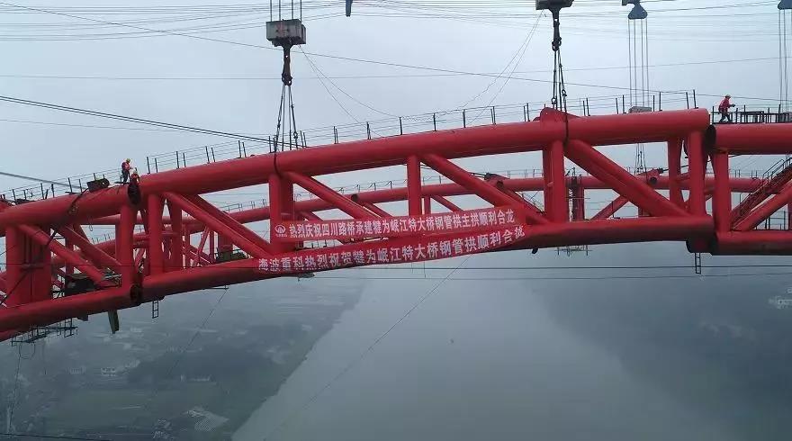 (海波重科新聞報(bào)道)2020年1月15日,犍為岷江特大橋施工現(xiàn)場(chǎng),只見高高的吊塔聳立岷江兩岸,纜索吊裝系統(tǒng)已準(zhǔn)備就緒;江面上,運(yùn)輸船舶搭載著最后一段拱肋,將其運(yùn)送到指定位置?!伴_始吊裝!”伴隨著現(xiàn)場(chǎng)一聲指令,拱肋從江面緩緩升起。經(jīng)過1個(gè)多小時(shí)的吊裝,上午10時(shí)42分,由海波重科承接的犍為岷江特大橋主橋457.6m鋼管拱橋,完成最后一段拱肋吊裝,實(shí)現(xiàn)了拱圈高精度合龍,合龍精度3mm,合攏應(yīng)力和全橋線形均滿足設(shè)計(jì)規(guī)范要求。