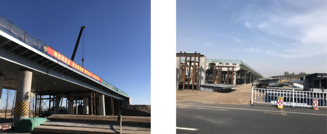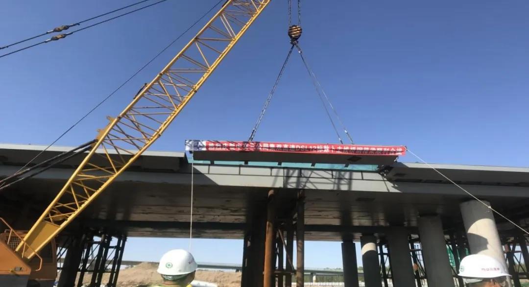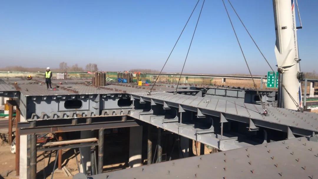 2018年10月,該項目順利完成了鋼箱梁首吊工作,其中敖卜互通均橫跨長深高速,協(xié)力互通XC匝道橫跨大廣高速,施工過程中既需保證高速半幅通車,還需保證過往車輛、施工人員的安全,施工難度極大,同時各聯(lián)段按照既定計劃實施存在較多變數(shù),工期保證難度極大。為保證項目順利完成,在海波重科現(xiàn)場負責人胡劍濤帶領下,克服種種困難,與甲方密切配合,制定合理的、切實可行的聯(lián)段安裝計劃和可行的交通疏導方案,以保證長深高速、大廣高速車流順暢,同時做好安全防護工作;合理安排梁段安裝順序,選擇最優(yōu)的吊車占位地點,提高安全性、減小安裝難度。