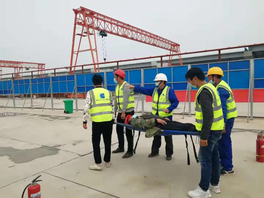 據(jù)本次消防演習(xí)負(fù)責(zé)人陳孝海透露,本次消防演練模擬疊拼場現(xiàn)場某作業(yè)人員在試用氣割時火花飛到油漆桶里使油漆燃燒發(fā)生火災(zāi),火勢迅速蔓延,引燃其它違章堆放的易燃品,工字鋼隨意擺放使其堵塞消防通道,火場內(nèi)被困人員兩人。疊拼場啟動應(yīng)急預(yù)案組織滅火自救并報(bào)119,將火撲滅。