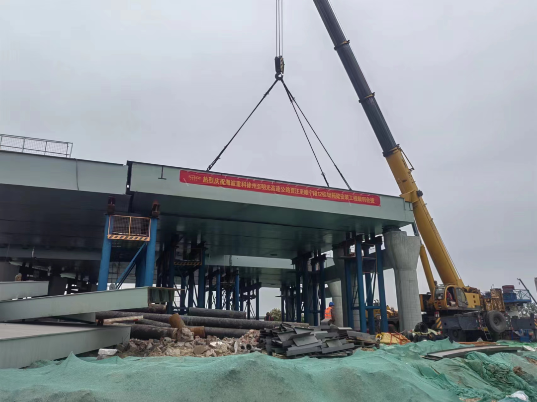 ? ? ? ?2023年4月22日,海波重科參建的徐州至明光高速公路賈汪至睢寧段XM-TJ12標(biāo)段鋼箱梁安裝工程順利完成合攏。這不僅為后續(xù)施工奠定了良好基礎(chǔ),也為全線通車的目標(biāo)推進(jìn)了重要一步!